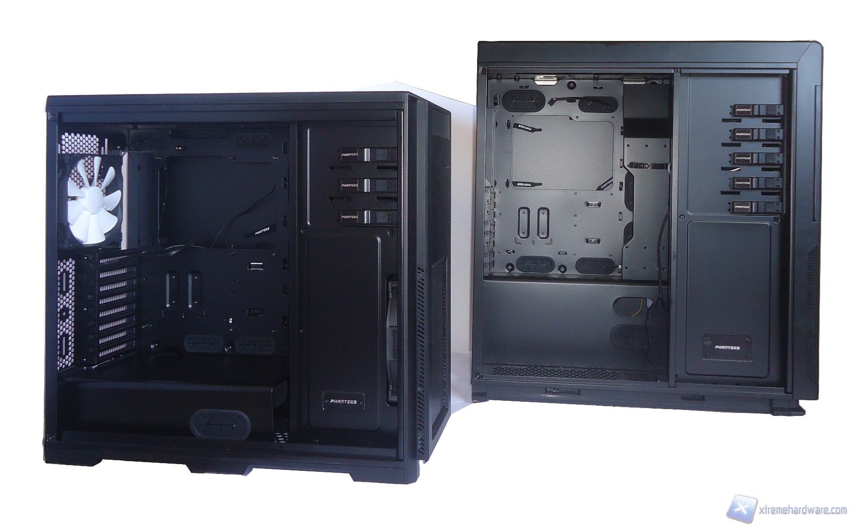 Alla vista interna i case sicuramente si somigliano, il pannello copri bay è uguale, se non fosse per il taglio riservato alla ventola da 200mm fornita in bundle con l’Enthoo Pro.