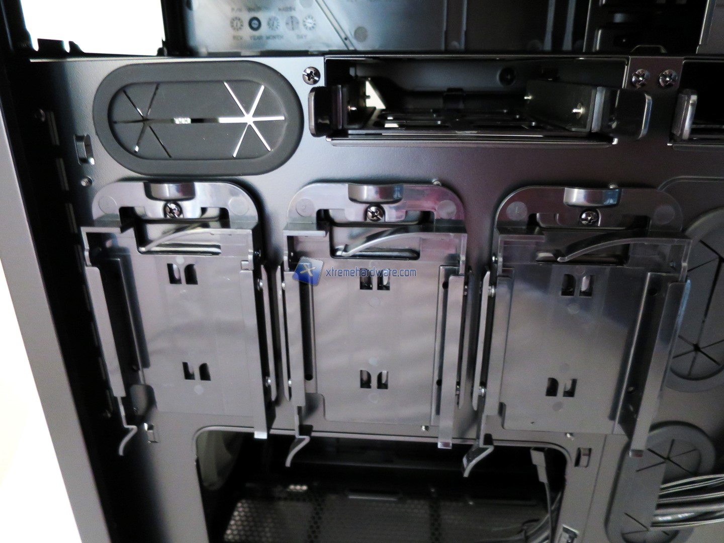 Partendo questa volta dalla zona superiore troviamo una zona molto ampia per installare con cura e attenzione alimentatori di diversa lunghezza nonché eventuali unità ottiche o in generale unità da 5,25’’. Gli slot per le unità da 5,25’’ sono anche queste Tool-Less per semplificare al meglio l’installazione.