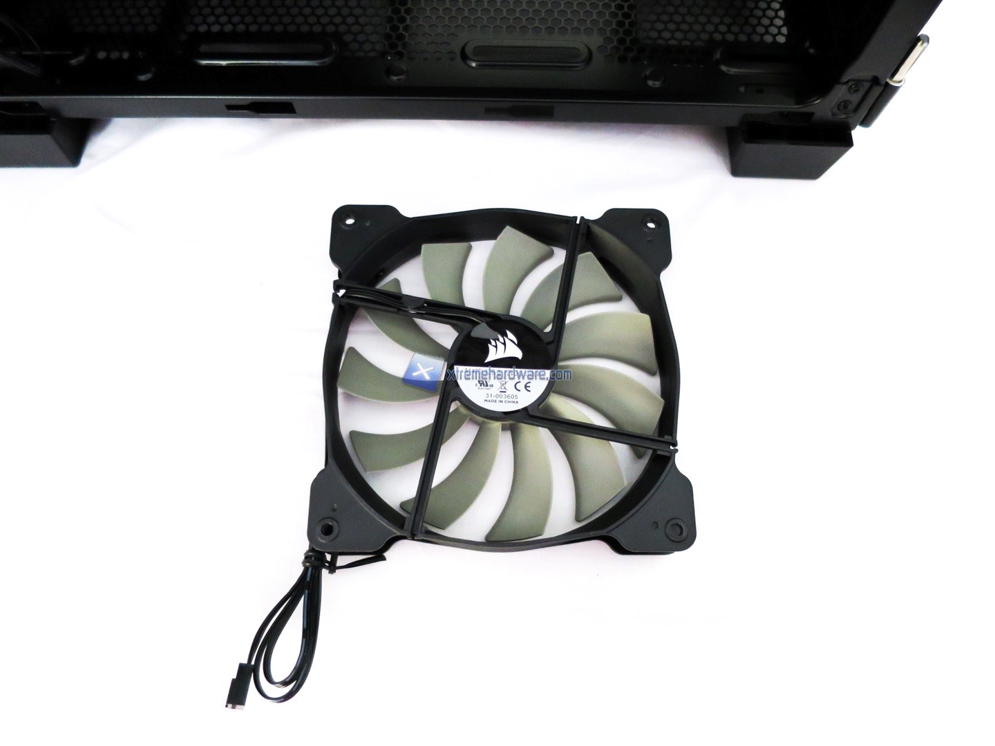 A lato degli inserti in gomma anti-taglio troviamo ed osserviamo meglio le prime due ventole pre-installate da 140mm che come vedremo a seguire riprendono il design dalle omonime Corsair AF con un leggero restyle.