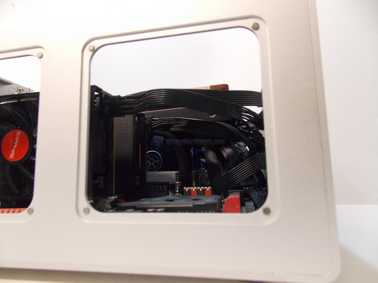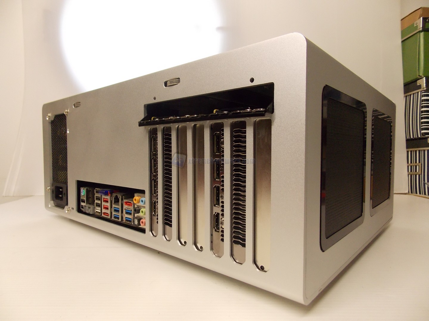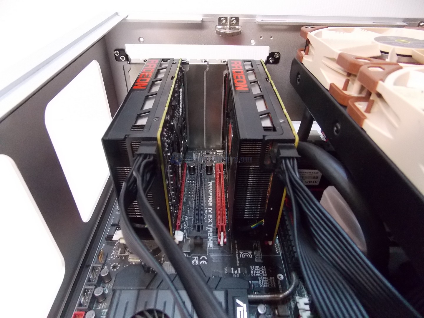 La piattaforma X79 utilizzata permette performance al pari delle ultime versioni rilasciate da Intel, scenari totalmente non limitati dalla CPU, e quindi una compatibilità fino potenzialmente a tre schede grafiche in parallelo. Nelle fotografie sottostanti sono state utilizzate per prova due AMD R9 NANO in crossfire, VGA dal basso consumo molto potenti e silenziose, che presentano un formato dimensionale particolarmente contenuto, e quindi perfetto per l'integrazione in sistemi tanto particolari. Si consiglia il montaggio di almeno 16GB per un moderno PC con prestazioni bilanciate.