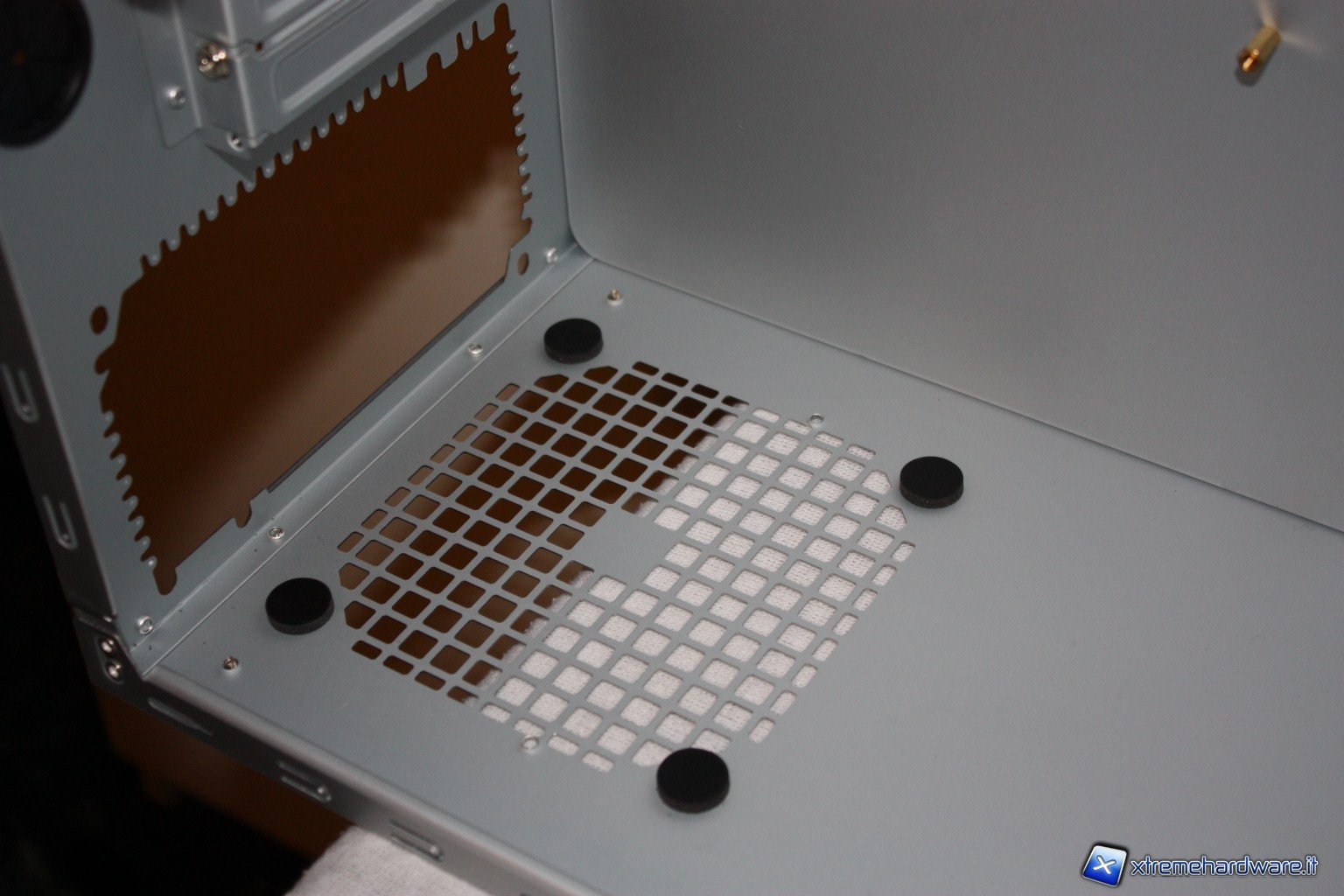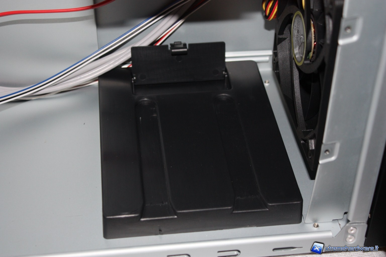 Una volta tolto il cage, sul fondo del case, in corrispondenza della zona degli hard disk, troveremo installato un pratico cassetto dove potremo alloggiare viti ed accessori vari.