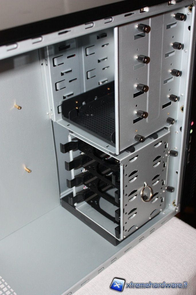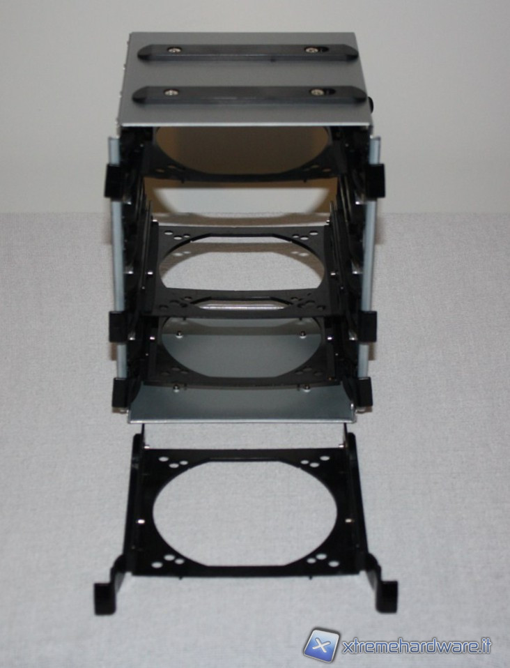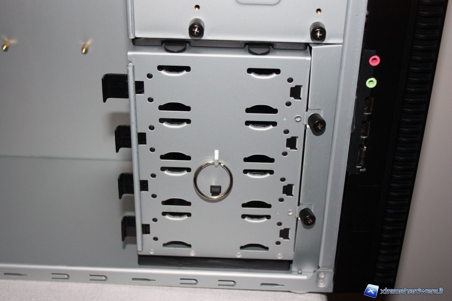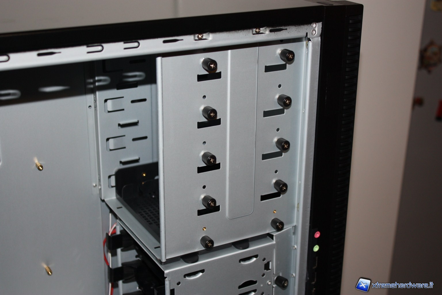 Il cage per hard disk potrà contenere fino 4 unità di memorizzazione, che saranno istallate senza l'utilizzo di viti supplementari grazie al sistema tool-free. Il cage è estraibile, in maniera tale da effettuare l'operazione di montaggio delle periferiche in assoluta comodità fuori dal case.
