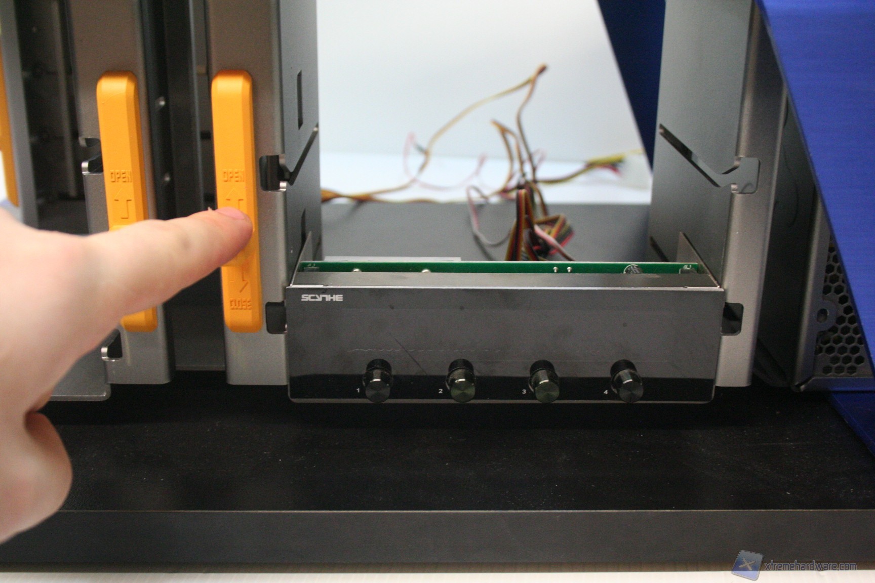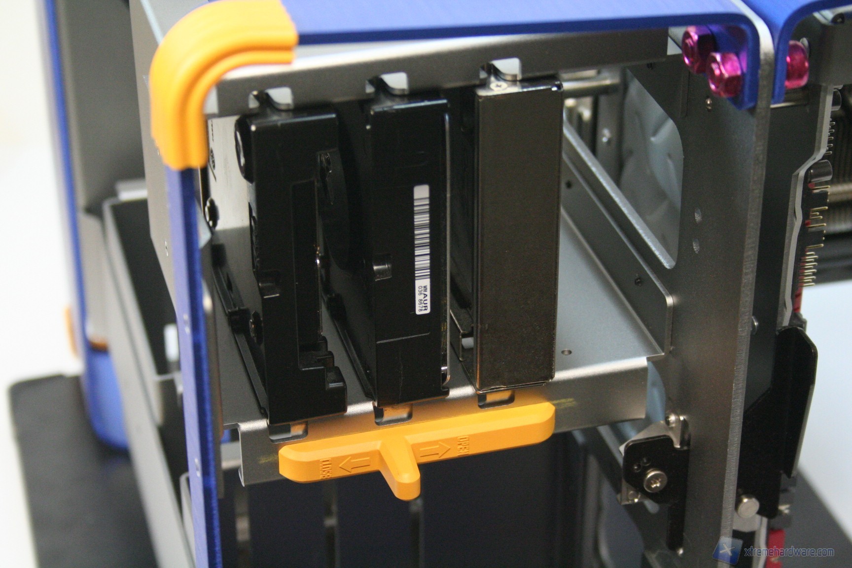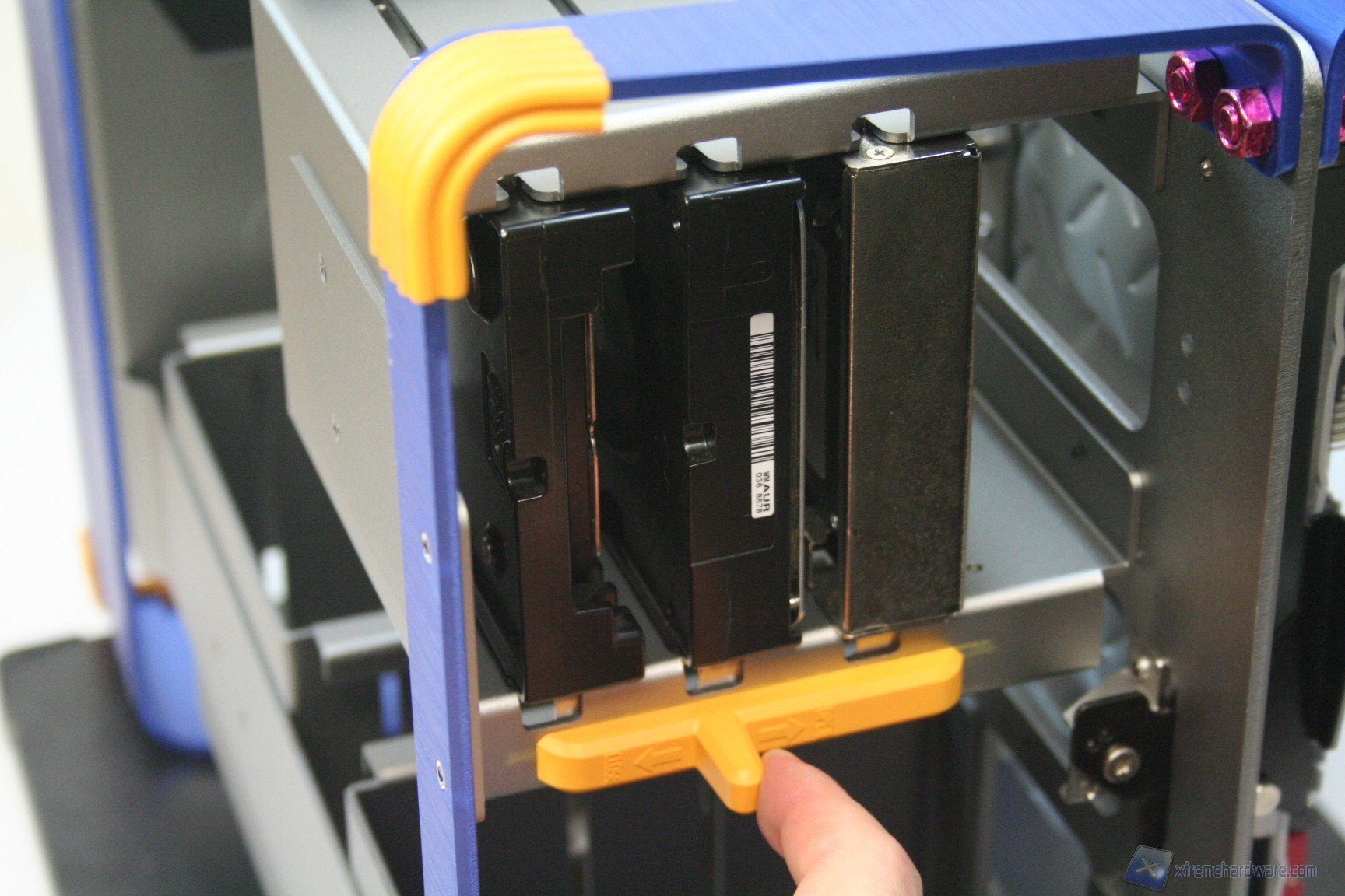 La gestione degli hard disk è semi tool-less, per via di un particolare sistema a scorrimento verticale. Facciamo subito presente che come idea è fantastica e come realizzazione tecnica, impeccabile. Vi mostriamo la procedura di inserimento frontale dei dischi rigidi: