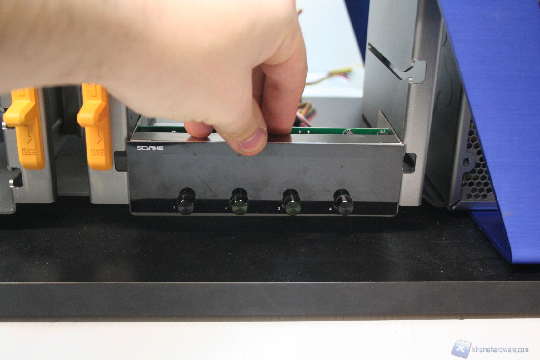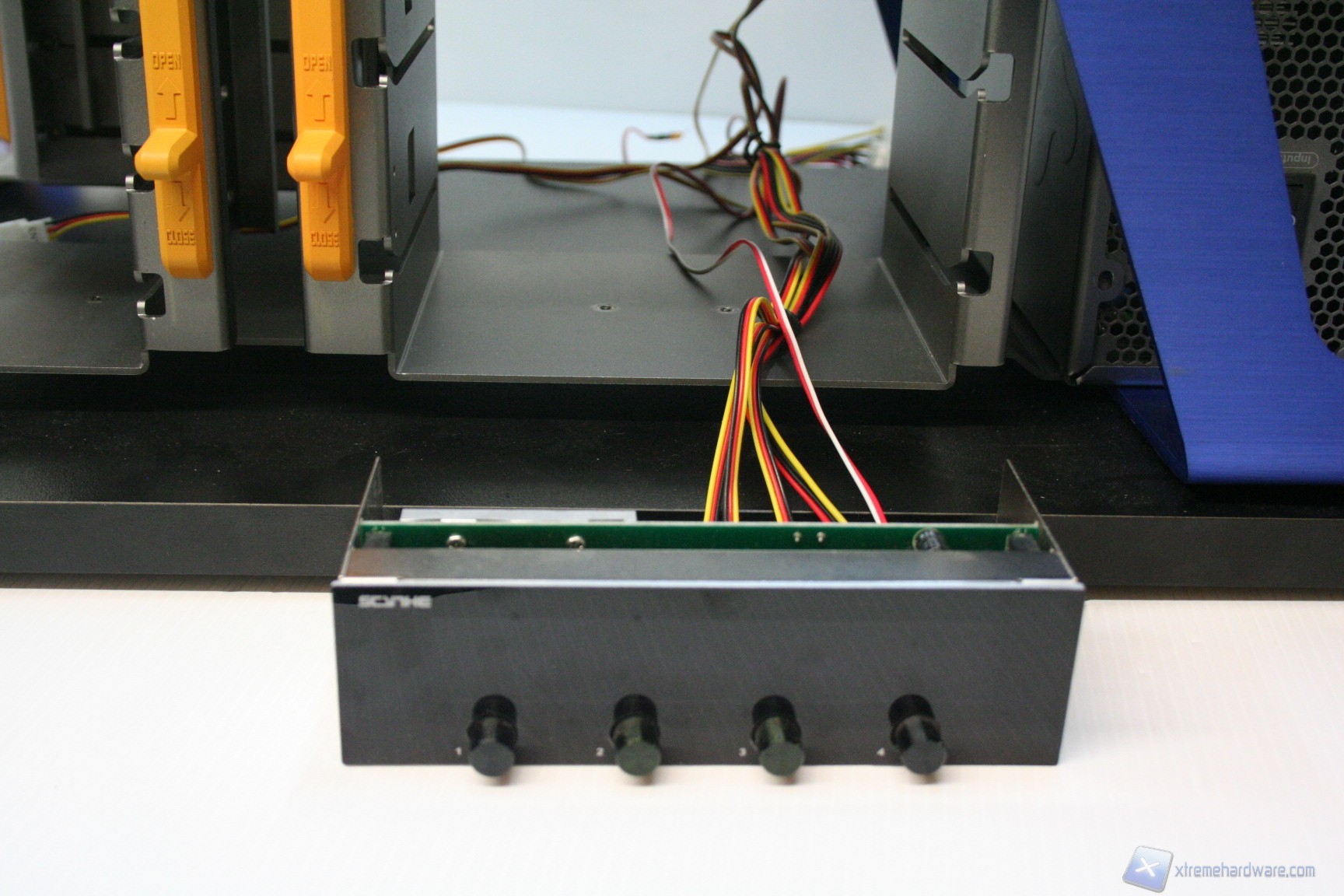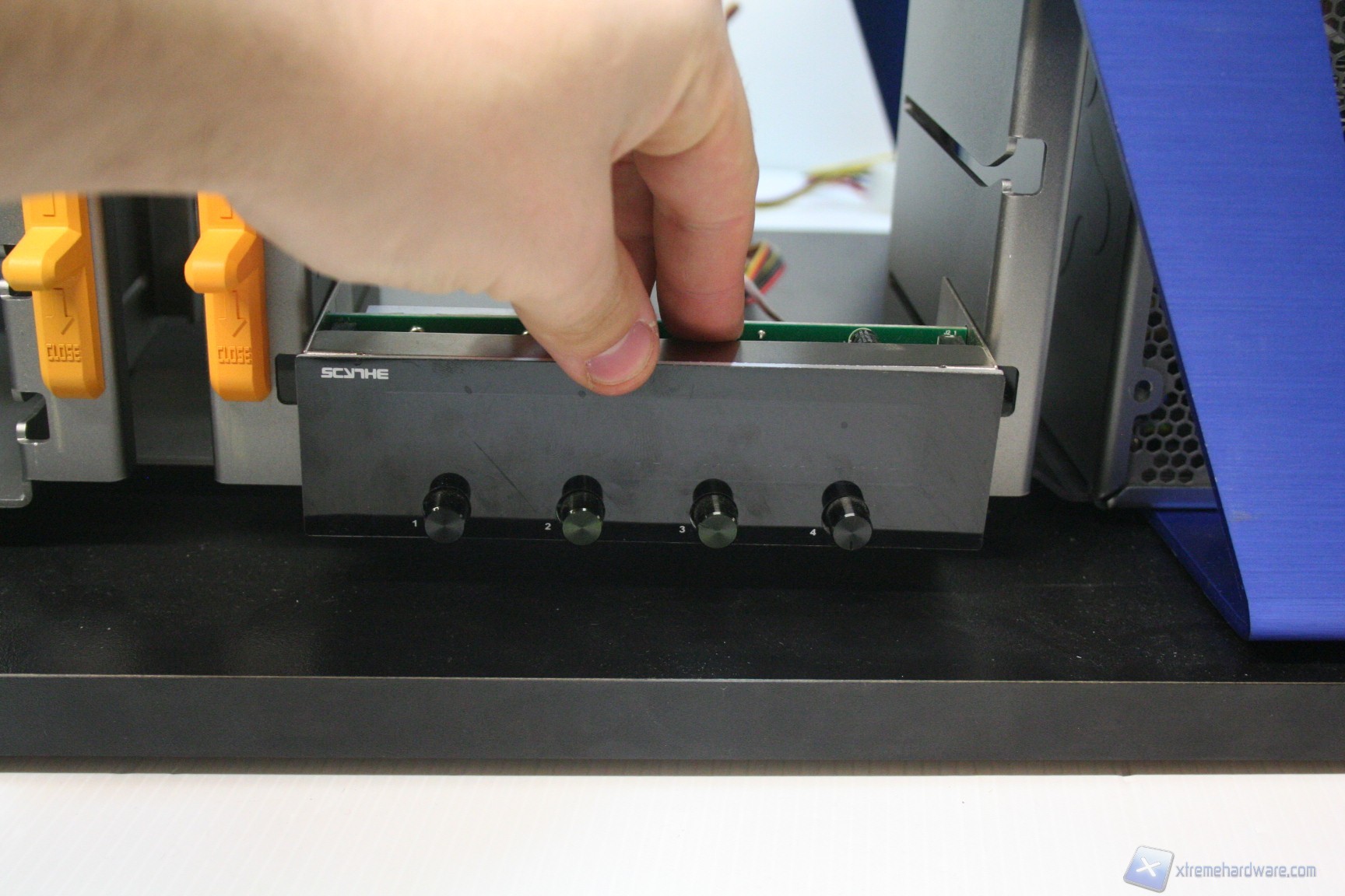 Nonostante quindi non siano presenti gli HS, è molto facile montare un hard disk e sostituirlo. L’isolamento vibrazionale è discreto, per via del fatto che non sono presenti gommini; comunque sia, anche questo elemento, se vogliamo è relativo perché ormai si utilizzano dischi rigidi che non presentano eccessive velocità di rotazione, quindi è secondario (7200RPM vs 15000RPM SCSI). La dissipazione è standard data l’assenza di una ventola dedicata. La rigidità delle periferiche, data la struttura in acciaio, è elevata e non è possibile configurare modularmente i cage per gli hard disk. Facciamo presente che comunque non c’è nessun supporto per SSD ed unità HDD da 2.5”, sebbene comunque sia possibile acquistarle separatamente. In merito alle periferiche da 5.25” vale lo stesso discorso e sarà anche possibile installare modelli di fan controller aventi un display leggermente più spesso degli altri; precisiamo infatti che il modello Lamptron FC5V2 è stato leggermente problematico ed è stato possibile serrarlo solo a metà, per via della collisione parziale con il meccanismo di blocco. E’ un discorso relativo perché comunque si è serrato bene e l’eventuale spostamento verticale non ne comprometterà la solidità.