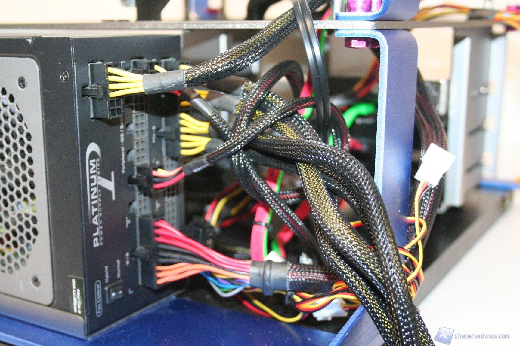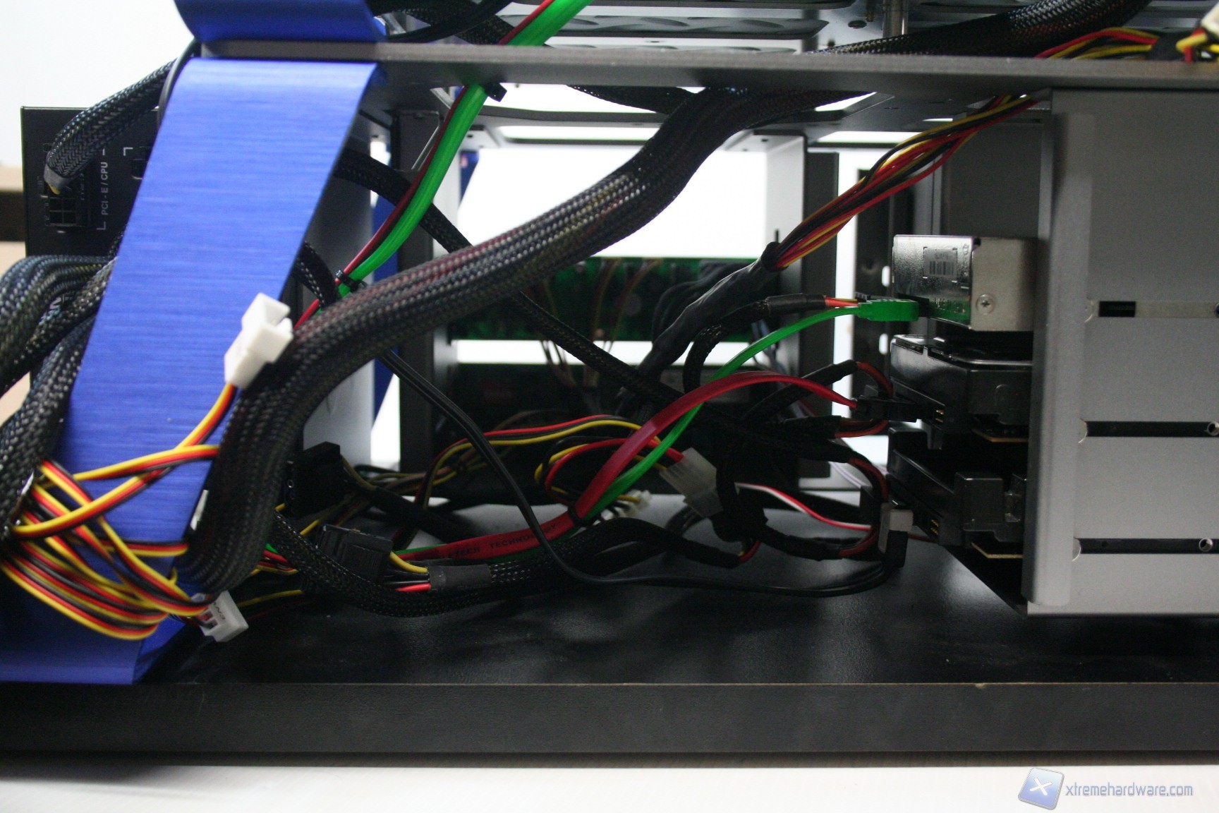 Il posizionamento dell’alimentatore è posteriore ed è stato studiato per bilanciare il peso, con tutte le unità installate. Si inserisce in un attimo ed è ben fissato al telaio. Il cablaggio posteriore però è caotico in quanto non esiste un sistema per il passaggio forzato dei cavi. Ricordiamo che è comunque possibile acquistare dei passacavi adesivi, in ferramenta. Il problema, anche qui è secondario. Se vogliamo sono tutti elementi di un progetto che non ha ancora raggiunto la commercializzazione, quindi è logico aspettarsi che ci sia qualcosa da migliorare. Date le diverse configurazioni possibili, sarà consigliabile l’acquisto di prolunghe di alimentazione.