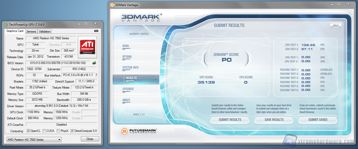 Forti della generosità della scheda video abbiamo sbloccato MSI Afterburner in modalità "overclock non ufficiali", abbiamo impostato la velocità di rotazione delle ventole ai massimi regimi e, con 1.25v, abbiamo raggiunto le sbalorditive frequenze di 1280MHz per la GPU e 1800MHz per le RAM, nonostante ciò le temperature non hanno superato i 65° durante le sessioni di benchmark. Tale overclock, unito ad un aumento della prequenza del processore a 5,1GHz , ha prodotto ottimi risultati nel benchmark 3dmark Vantage.
